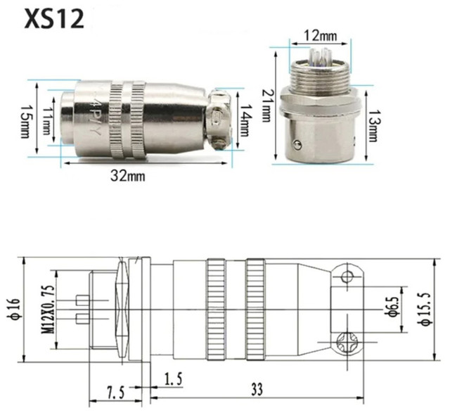 Роз'єми XS-серії (XS8, XS9, XS10, XS12) – це циліндричні електричні з'єднувачі з металевим корпусом та різьбовим механізмом фіксації. Числа в назві (8, 9, 10, 12) зазвичай вказують на зовнішній діаметр корпусу або діаметр кріпильної різьби в міліметрах. Кожен роз'єм складається зі штекера (кабельної частини) та гнізда (панельної частини), які щільно з'єднуються за допомогою різьби, забезпечуючи надійний контакт та захист від механічних впливів. Вони призначені для передачі як сигналів керування, так і невеликих струмів живлення.
